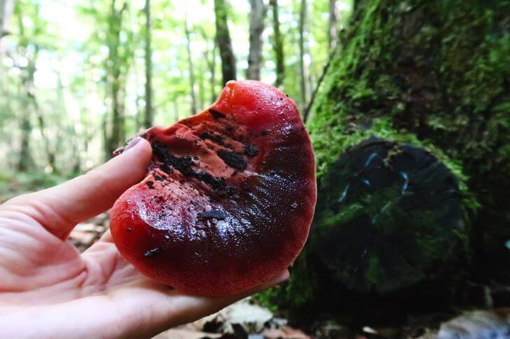 One unique characteristic of beefsteak mushrooms is that they are parasitic in nature. They typically infect wounded or dying trees, causing the wood to rot and decay